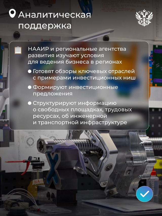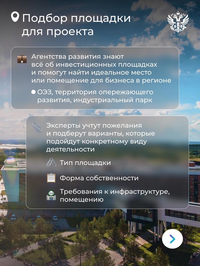 🤝Бизнесу их даже не нужно искать — подходящий набор можно составить вместе с институтом развития, который выполняет функцию одного окна для инвесторов.
