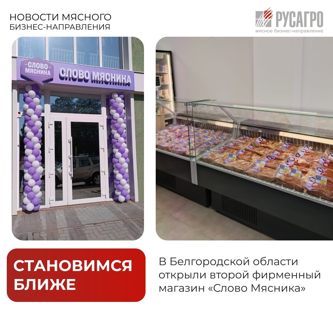 🔥Мясной бизнес «Русагро» продолжает уверенное развитие сети розничных магазинов бренда, который уже стал символом качества, вкуса и доверия. В Белгородской области открыл двери второй фирменный магазин «Слово Мясника» в городе Строителе по адресу: ул. Промышленная, д. 57.